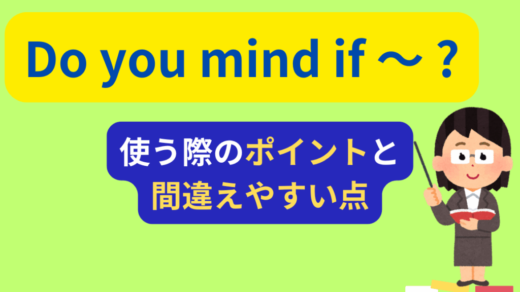 - 相手の反応:相手が気になることであれば、その後の対応にも配慮する必要があります。「No, I don’t mind.」という返事もありますので、その後どう進めるか考えることが大切です。