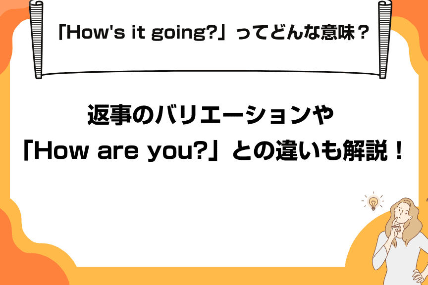 - ビジネスシーン:同僚との仕事について話す前に「How is it going?」と言うこともあり、この場合には少しフォーマルになります。