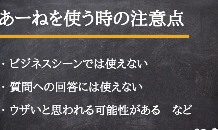 このように、あーねは日常会話で頻繁に使用される重要な表現です。その意味と使い方を知っておくことで、日本語コミュニケーション能力が向上します。また、相手との距離感や関係性によって適切な言葉選びも求められるため、この点にも留意しましょう。