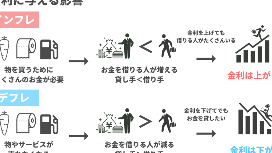 - ハイレート:高い金利環境になると、新規借入れを控える傾向が強まり、大型投資が減少します。