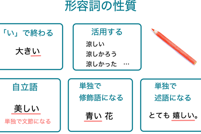 日本語の形容詞は主に「い形容詞」と「な形容詞」に分けられます。それぞれの特徴を理解し、それに基づいて文中でどのように使うかを見ていきましょう。