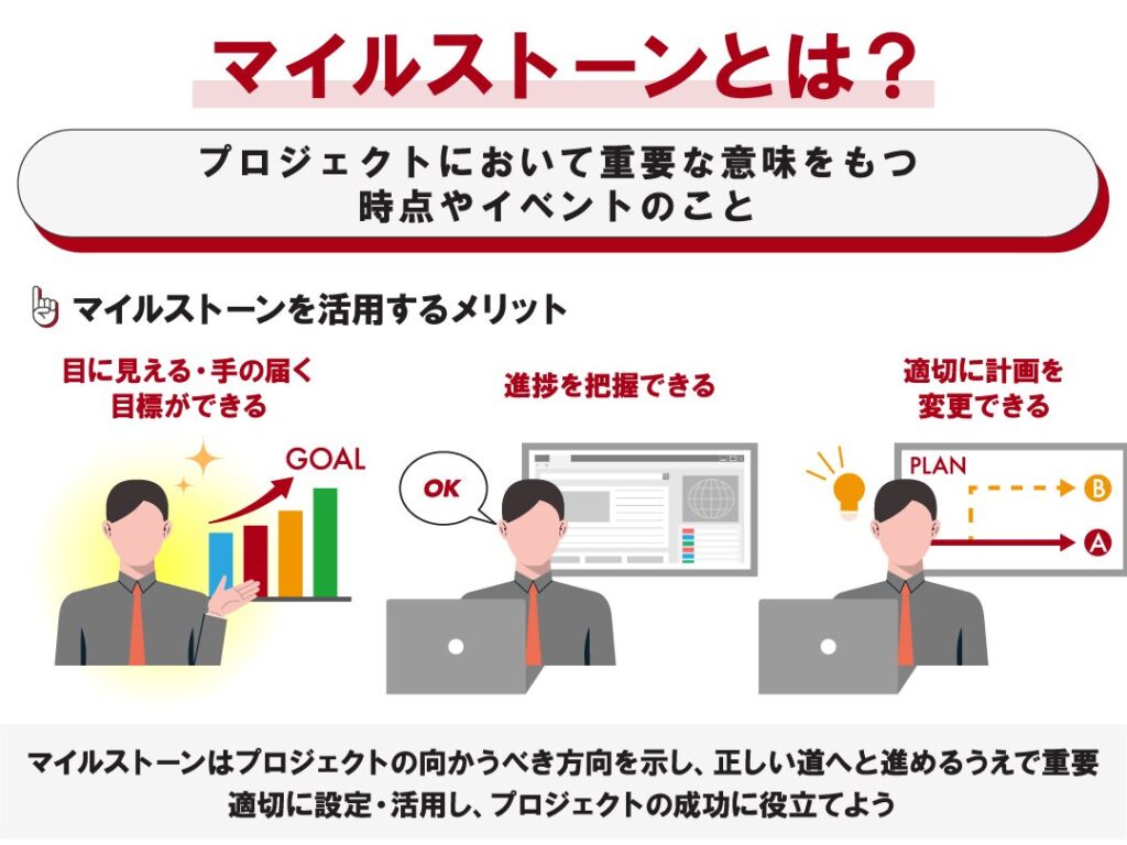 - リソース配分: 各マイルストーン達成後には、新たなリソース配分や優先順位付けが求められることがあります。これによって効率的な作業環境が維持されます。
