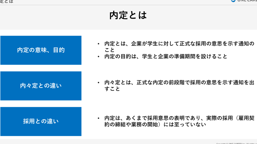 - キャリア形成: 内定によって具体的な進路が決まり、その後のキャリアプランにおいても大きな指針となります。
