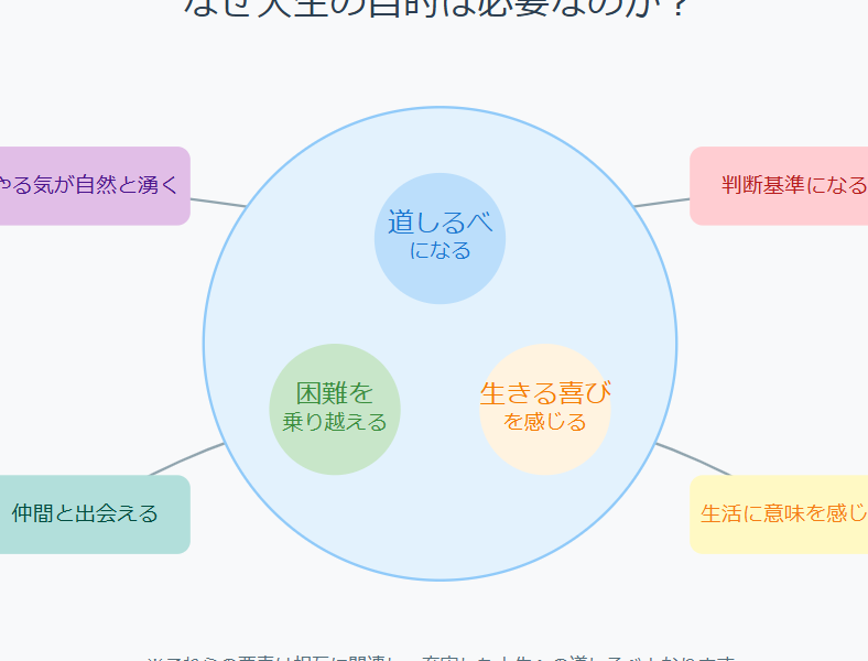 - 目的意識の強化: 他者と協力して目標達成に取り組むことで、「自分の生きてる意味」が明確になる。