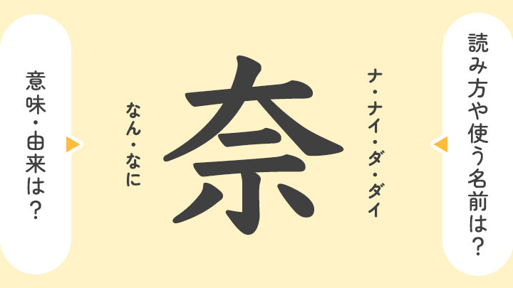 - 「奈」: 地名や文化的背景に関連。