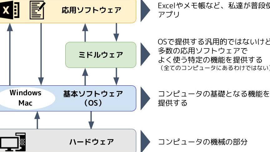 - システムソフトウェア: オペレーティングシステム(OS)など、ハードウェアとのインターフェースを提供し、それ自体が他のソフトウェアを運用するための基盤となります。