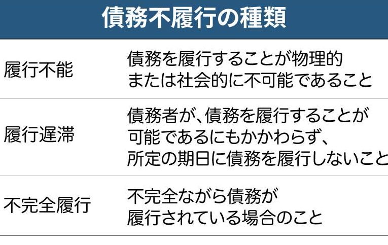 債務不履行にはいくつかの種類があります。それぞれ異なる法的影響を持つため、それらを理解することは重要です。