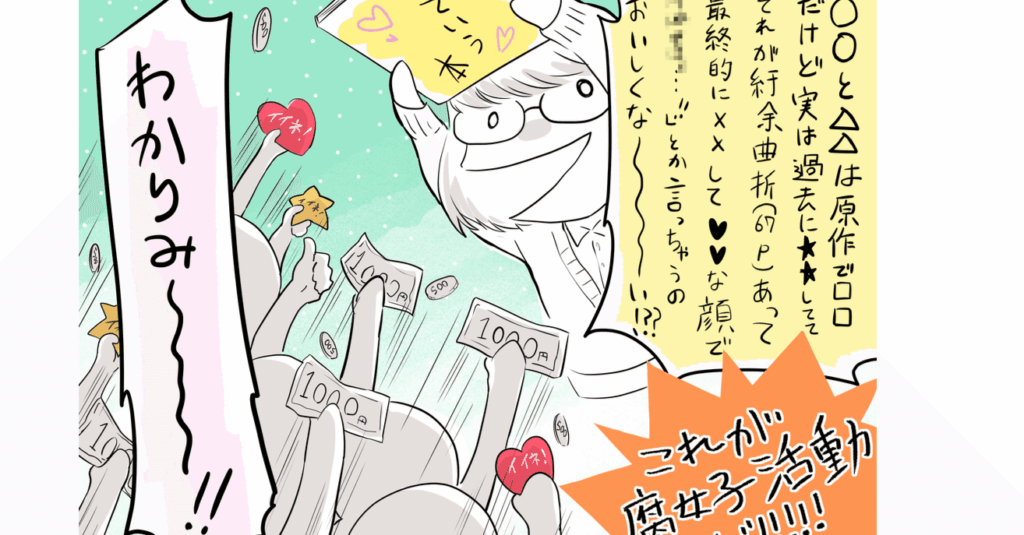 (このような交流によって、新しい友達との出会いや創作活動へのインスピレーションも得られます。そして、このネットワークこそが腐女子文化全体を支える大きな柱になっていると言えるでしょう。)