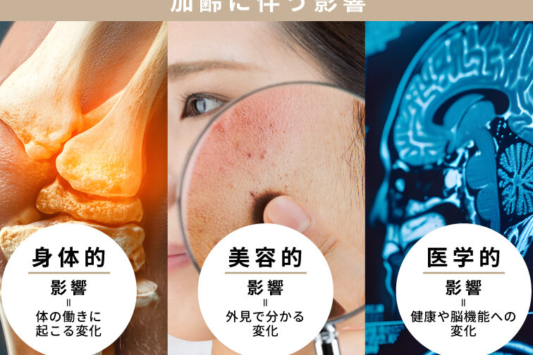 この二つは互いに関連し合いながら進行しており、一方が他方に影響を与えることもあります。そのため、私たちはこの両面からアプローチすることでより健康的な老後を迎えることが可能となります。
