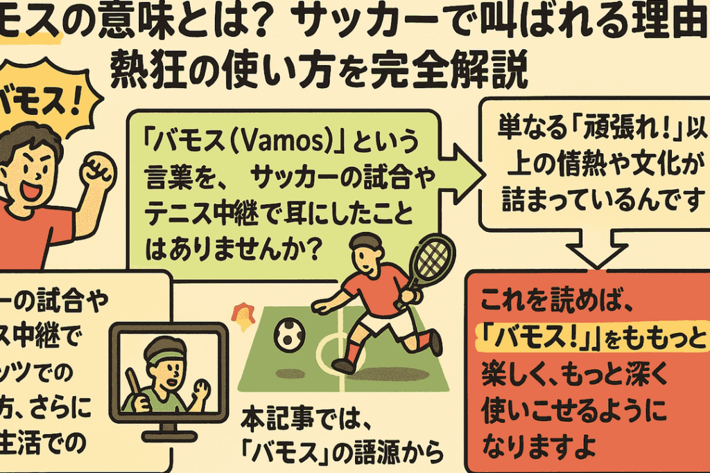 バモスは、スペイン語の「vamos」に由来し、「行こう」や「進もう」という意味を持つ言葉です。この表現は、日本においても特に若者たちの間で広まっています。彼らはこの言葉を日常会話に取り入れ、友人とのコミュニケーションやカジュアルな場面で使用しています。