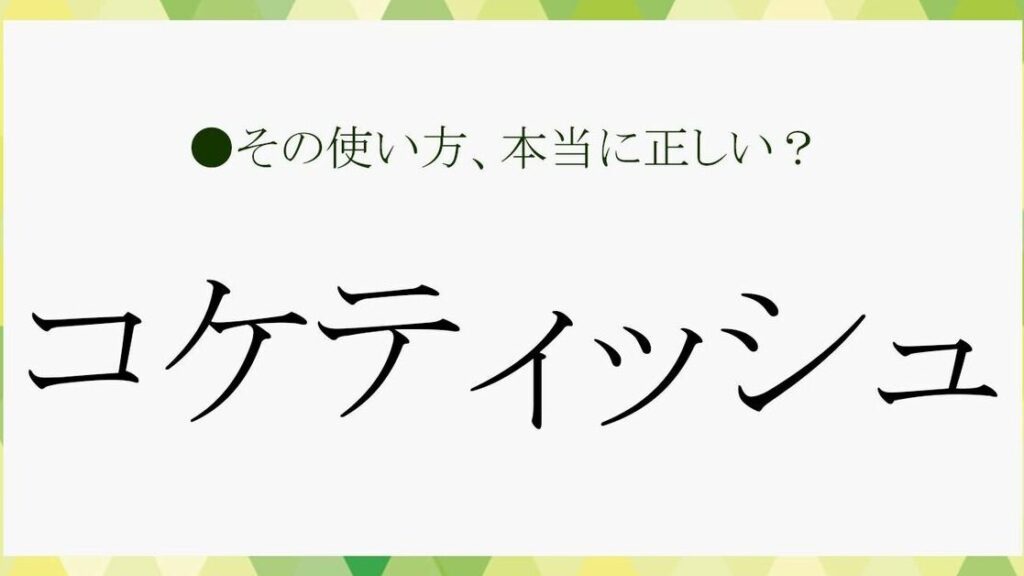 「コケティッシュ」という言葉の由来は、英語の「coquettish」にさかのぼります。この単語はフランス語の「coquette」から派生したもので、元々は女性的な魅力や色気を表すために使用されていました。日本語においても、この概念は似たような意味合いで受け入れられていますが、より広範な文脈で使われることが特徴です。