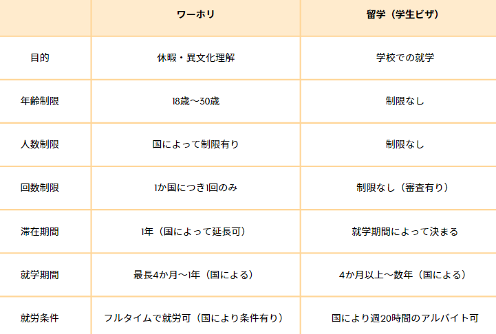 以下は、主なワーキングホリデー参加国とそのビザの概要です。