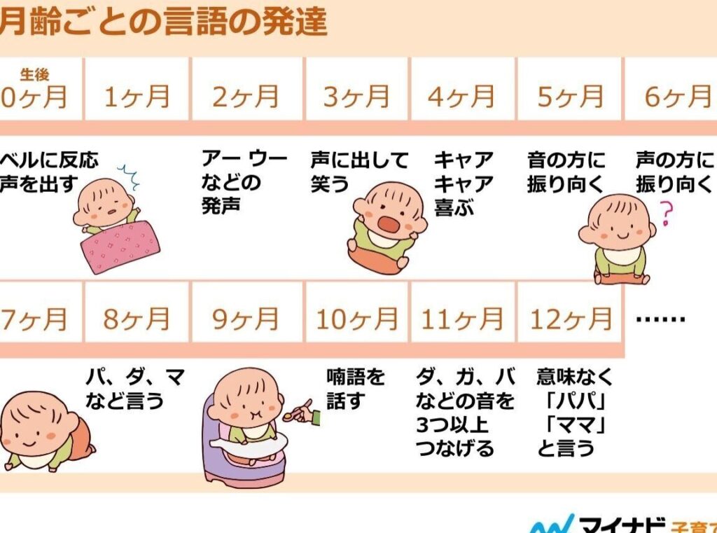 | 6-12ヶ月 | バブリングや音真似。母国語特有の音に反応。 |