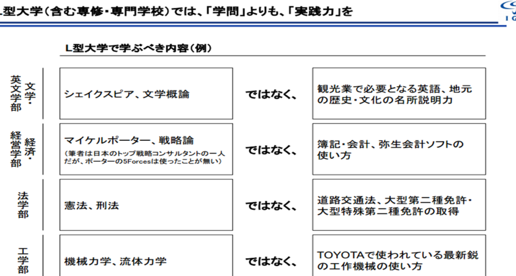この表からわかるように、それぞれ異なるフィールドで求められる能力や知識によって結果にも差異が出てきます。したがって、私たちはそれぞれの専攻分野によってどれだけ効果的に市場価値を高められるかという視点から、新しい議論へと展開していく必要があります。