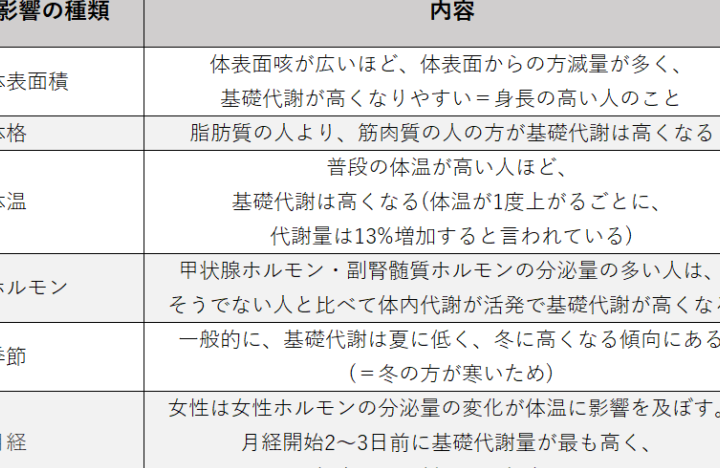 基礎代謝と影響要因