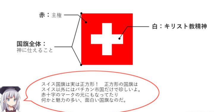 - 観光名所: スイス国内の名所には、必ずと言っていいほどこの国旗が掲げられており、訪問者に強い印象を与えます。