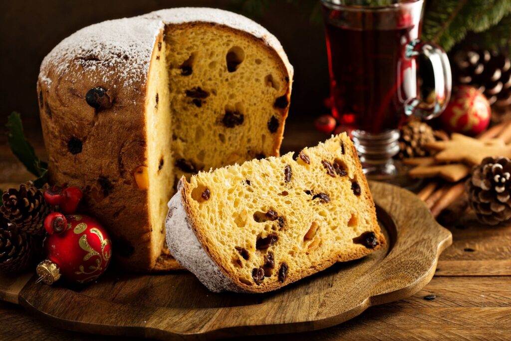 - 形状: パネトーネは通常、高さのある円筒形で焼かれ、この形状が特徴的です。一方、多くのクリスマスケーキは平たく焼かれているため、視覚的にも印象が異なります。