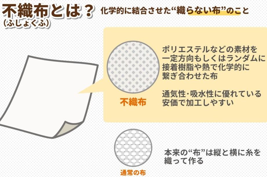 これらの特長から、不織布は医療用マスクやフィルター材など、安全性が求められる場面でも利用されています。また、この素材はリサイクル可能なものも多く存在し、環境への影響も配慮されています。