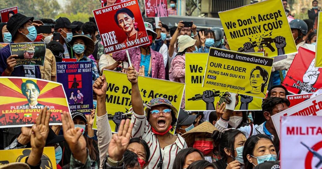 2021年2月に発生した軍事クーデターは、ミャンマー国民に深刻な影響を及ぼしました。この出来事に対して、多くの市民が「3本指」のジェスチャーを使って抗議活動を行いました。以下は、その具体的な状況です。