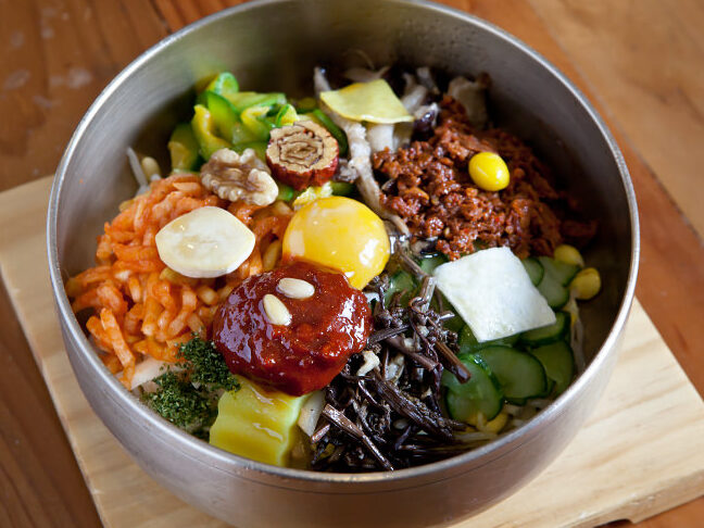 - 京畿道:この地域では、新鮮な野菜とともに辛味噌がよく使用され、具材が色とりどりになります。「ビビン」の概念は、視覚的にも楽しませる要素が強調されています。