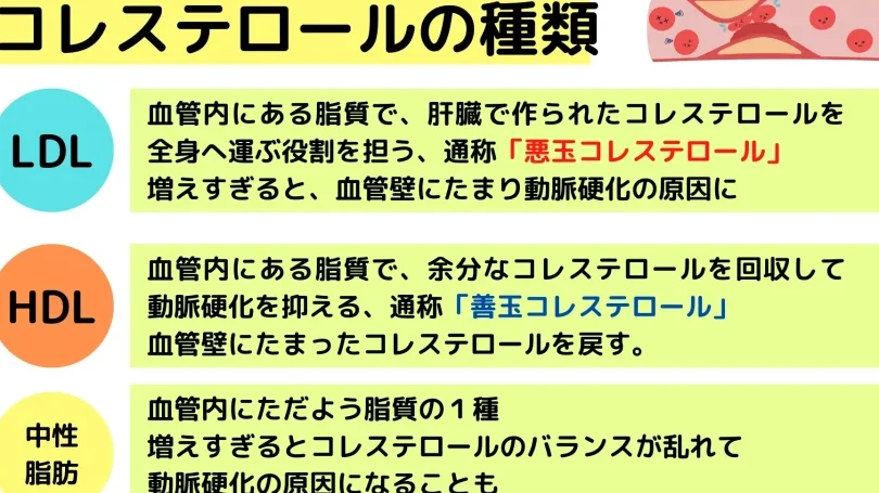 健康への影響について考える際には、コレステロール値だけでなく、その種類も考慮する必要があります。以下はそのポイントです: