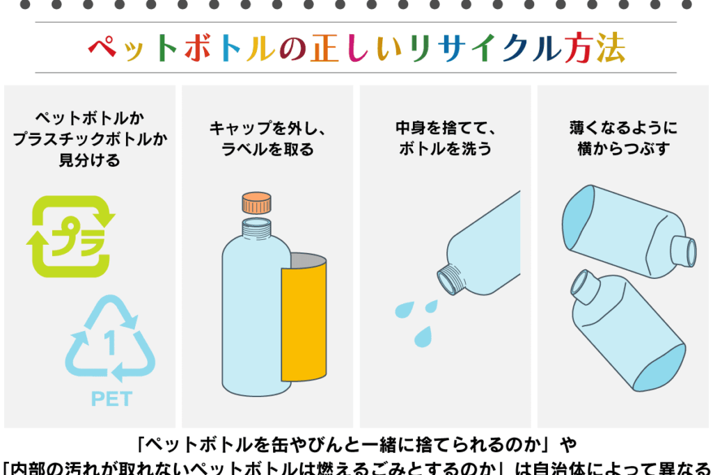- 収集: 使用済みペットボトルは回収されます。多くの場合、市町村が指定した場所や専用施設で行われます。